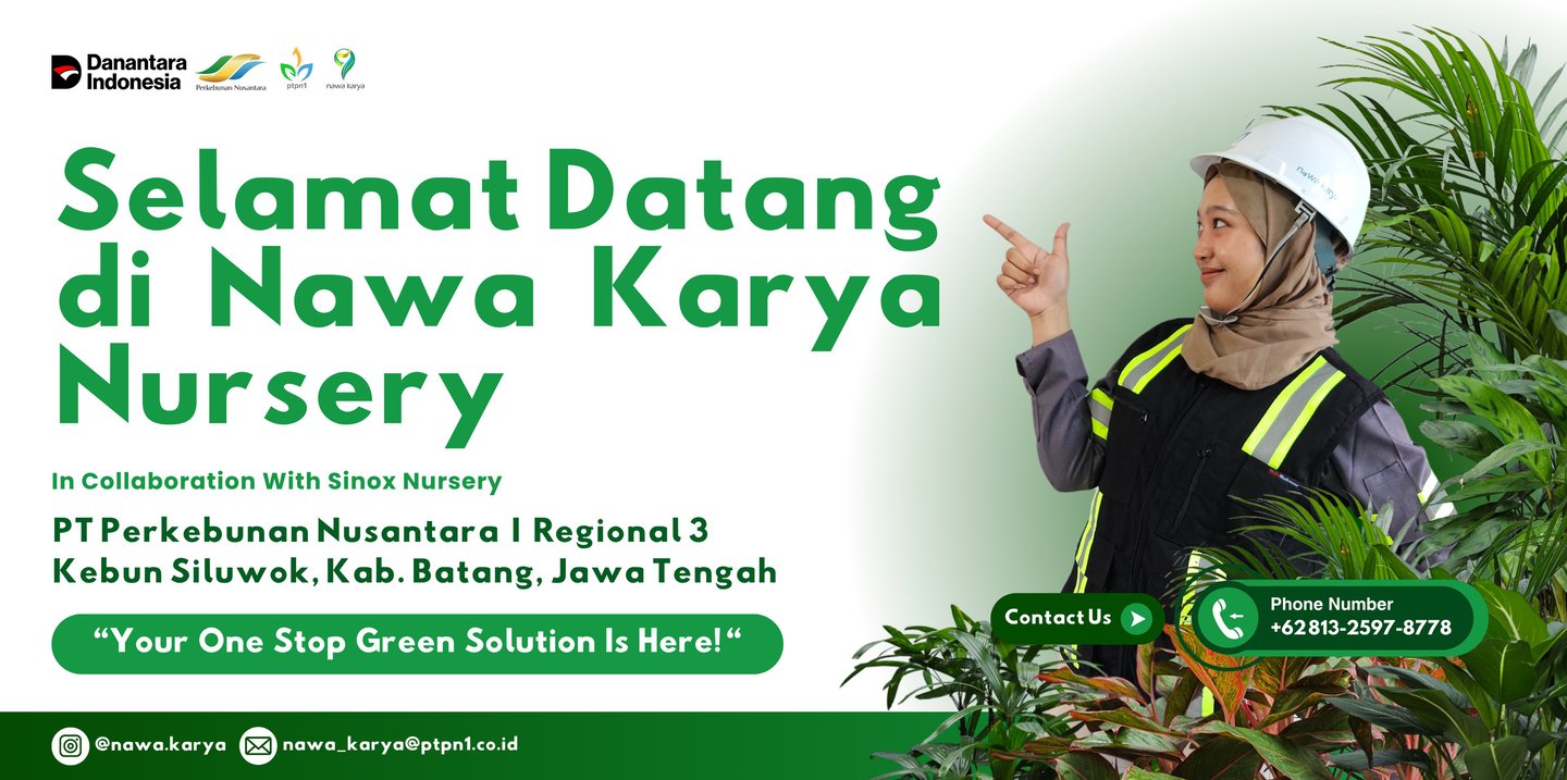 Nawa Karya Nursery adalah perusahaan yang bergerak di bidang pembibitan dan penjualan tanaman hias maupun buah, jasa pembuatan serta perawatan taman, rental tanaman, hingga penyediaan pot dan perlengkapan taman. Berlokasi di Ngebang, Plelen, Kec. Gringsing, Kabupaten Batang, Jawa Tengah, kami hadir dengan komitmen untuk selalu memberikan layanan terbaik bagi setiap pelanggan.Kami meyakini bahwa keindahan dan kesejukan ruang hijau bukan sekadar pelengkap, melainkan kebutuhan penting untuk menciptakan suasana yang sehat, nyaman, dan bernilai estetika tinggi. Dengan pengalaman, tenaga ahli berkompeten, serta koleksi tanaman berkualitas, Nawa Karya Nursery siap menjadi mitra terpercaya dalam menghadirkan lingkungan yang indah, asri, dan berkesan—baik untuk rumah tinggal, perkantoran, hotel, kawasan komersial, maupun ruang publik.
